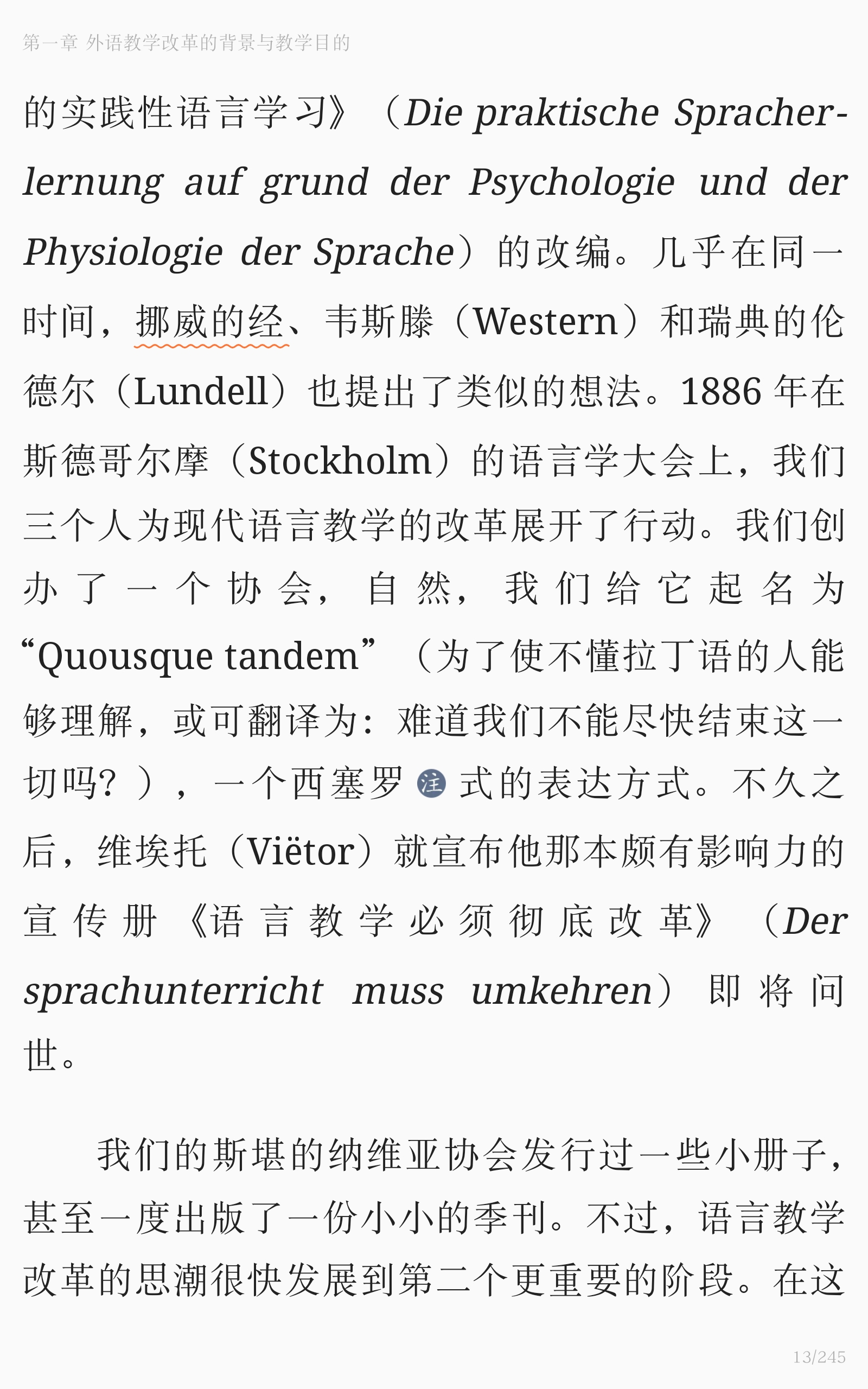 只有「几乎在同一时间,挪威的韦斯滕(Western)和瑞典的伦德尔(Lundell)也提出了类似的想法。」的意思,至于「经、」则显然是一误植,或者是作者翻译时以为有两个挪威的人名,这才有了这一句——不过一个字的人名,就算是外国人的译名,想来也是不多见的。这还是这本书刚刚开篇。因此,我不得不对白建华先生口中的斯坦福田靓博士的英文水平存疑。当然,这也可能只能怪编辑书的人搞砸了;想不到商务印书馆也出这种错误,况且原文已经严重影响阅读理解了。